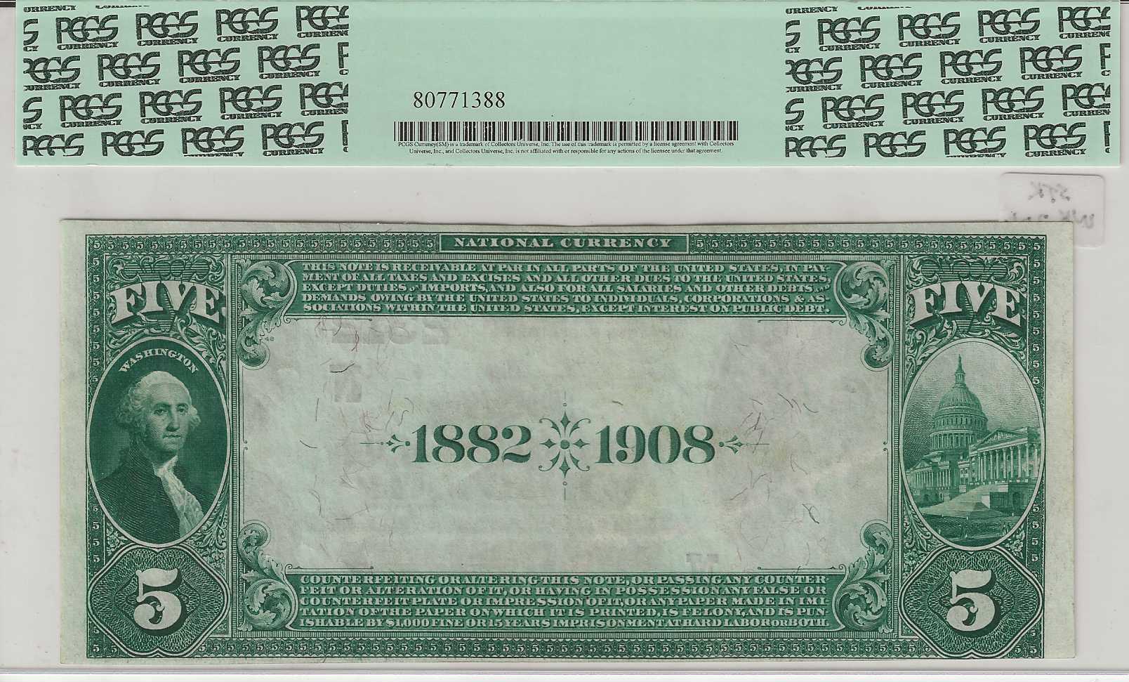 Date Back FR-534 1882 $5 The First NB, Ch# 2312 PCGS58 CAU
