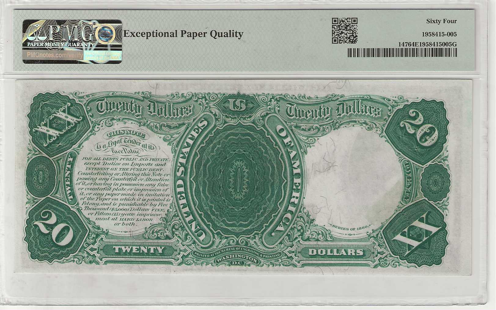 FR. 147 – 1880 $20 Legal Tender Note PMG 64EPQ – CU