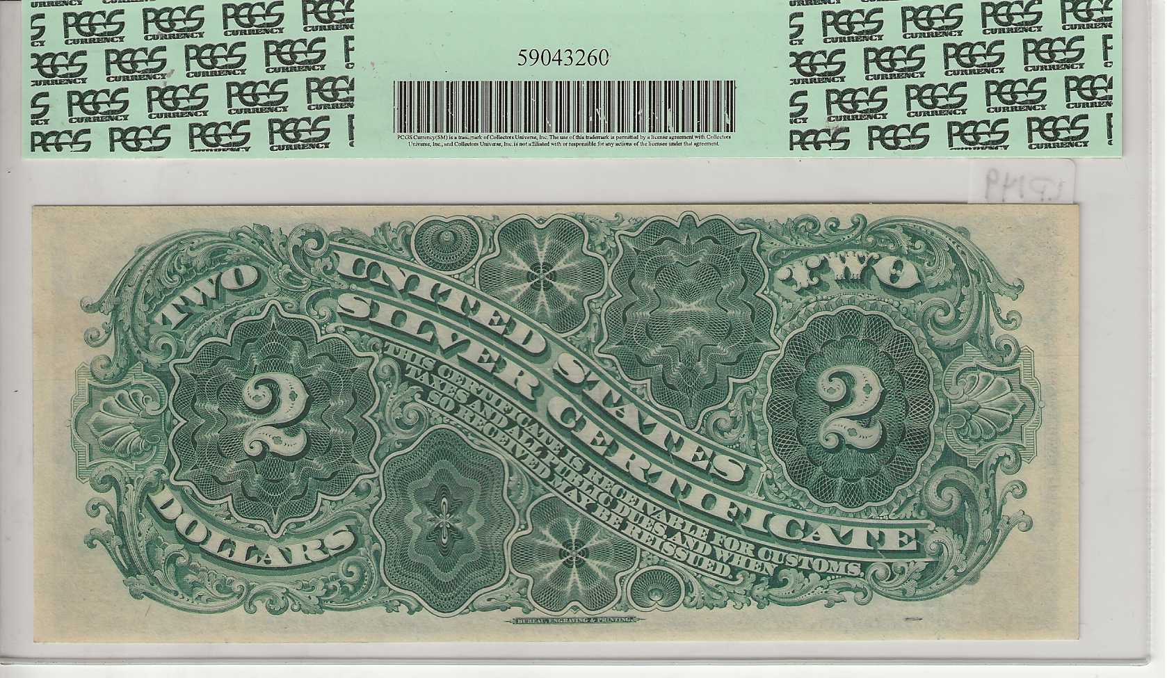 This beautifully printed Hancock Deuce note displays great color and wide margins. The total census for this Friedberg number, including all grades, stands at 215 examples. General Winfield Scott Hancock died on February 9, 1886, and these notes, featuring his portrait as engraved by Charles Schlecht, were released later that year. This piece is perfectly margined with original paper wave and a bold blue overprint. It has earned the prestigious PCGS Premium Paper Quality’ designation. A wonderful note destined for an outstanding collection.
