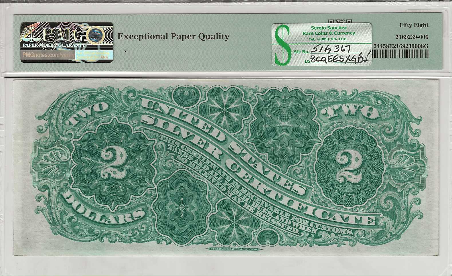 FR. 244 – 1886 $2 Silver Certificate PMG 58EPQ – CAU