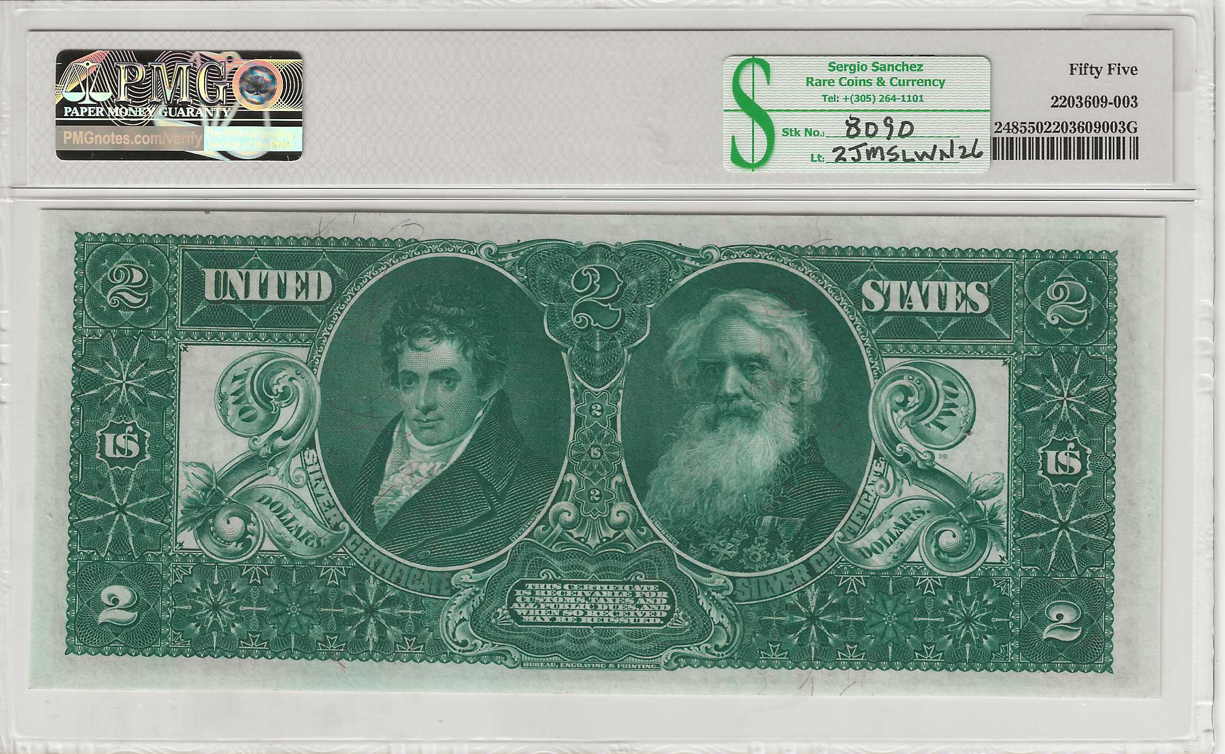 A classic note from the famed Educational Series, featuring the ornate allegorical vignette “Science Presenting Steam and Electricity to Commerce and Manufacture.” This Fr. 248 example displays crisp paper, strong color, and excellent eye appeal for the grade. The reverse showcases detailed portraits of Robert Fulton and Samuel F. B. Morse. A highly desirable specimen of one of the most artistically admired U.S. banknotes.