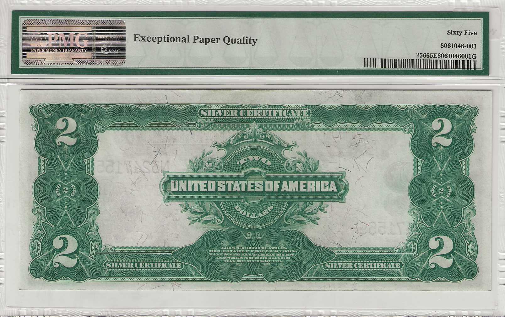 FR. 256- 1899 $2 Silver Certificate PMG 65EPQ GCU