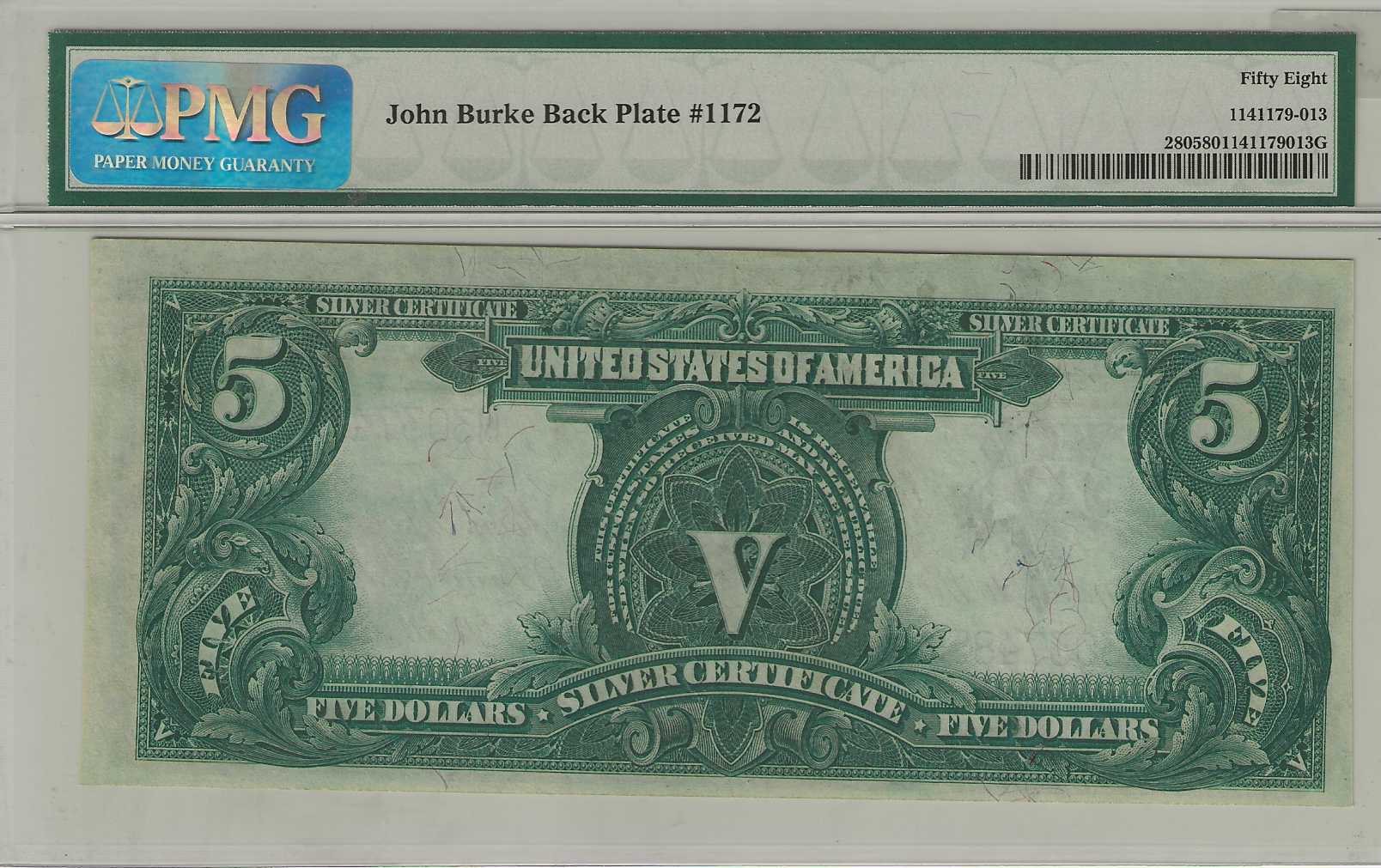 FR. 280 – 1899 $5 Silver Certificate PMG 58 CAU