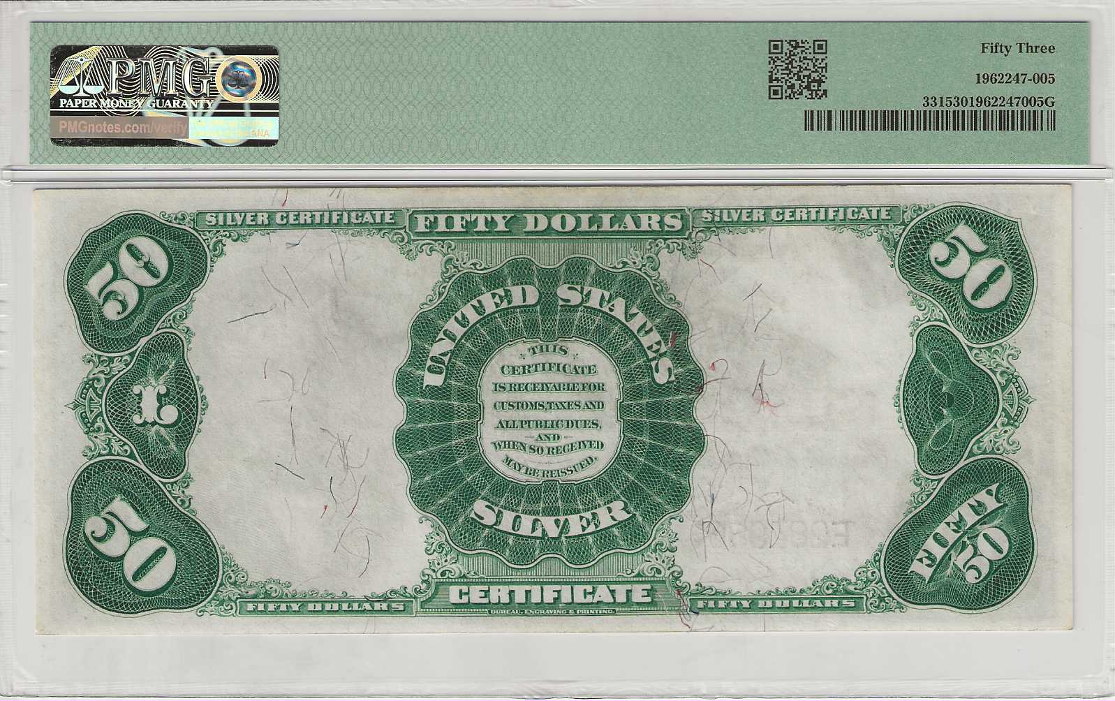 FR. 331- 1891 $50 Silver Certificate PMG 53 – AU