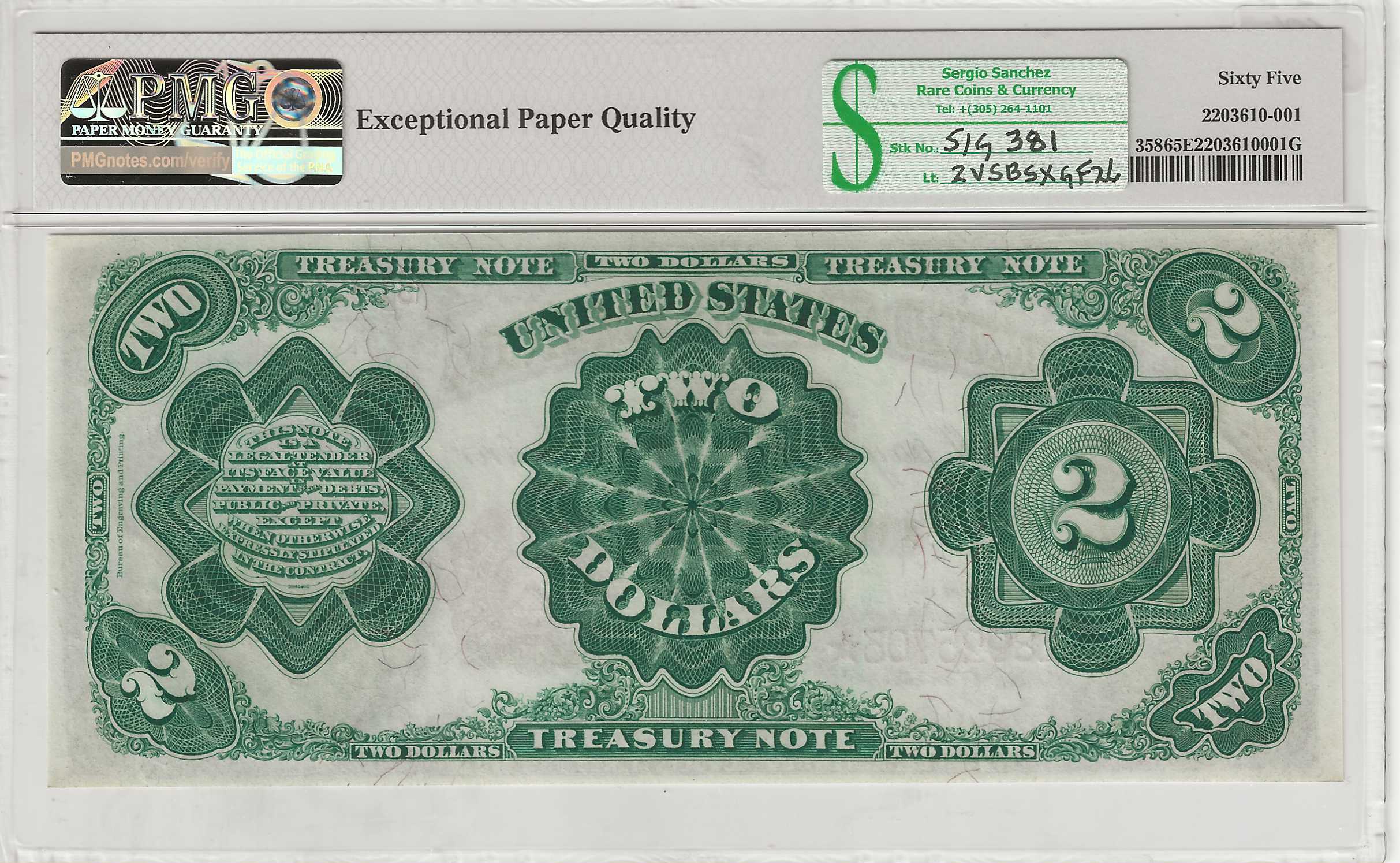 FR. 358 – 1891 $2 Treasury Note PMG 65EPQ – GCU