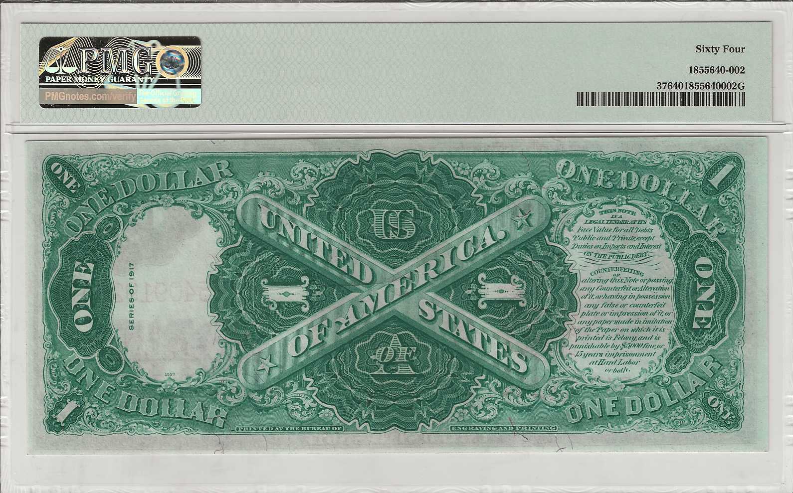FR. 37 – 1917 $1 Legal Tender Note PMG 64 -CU