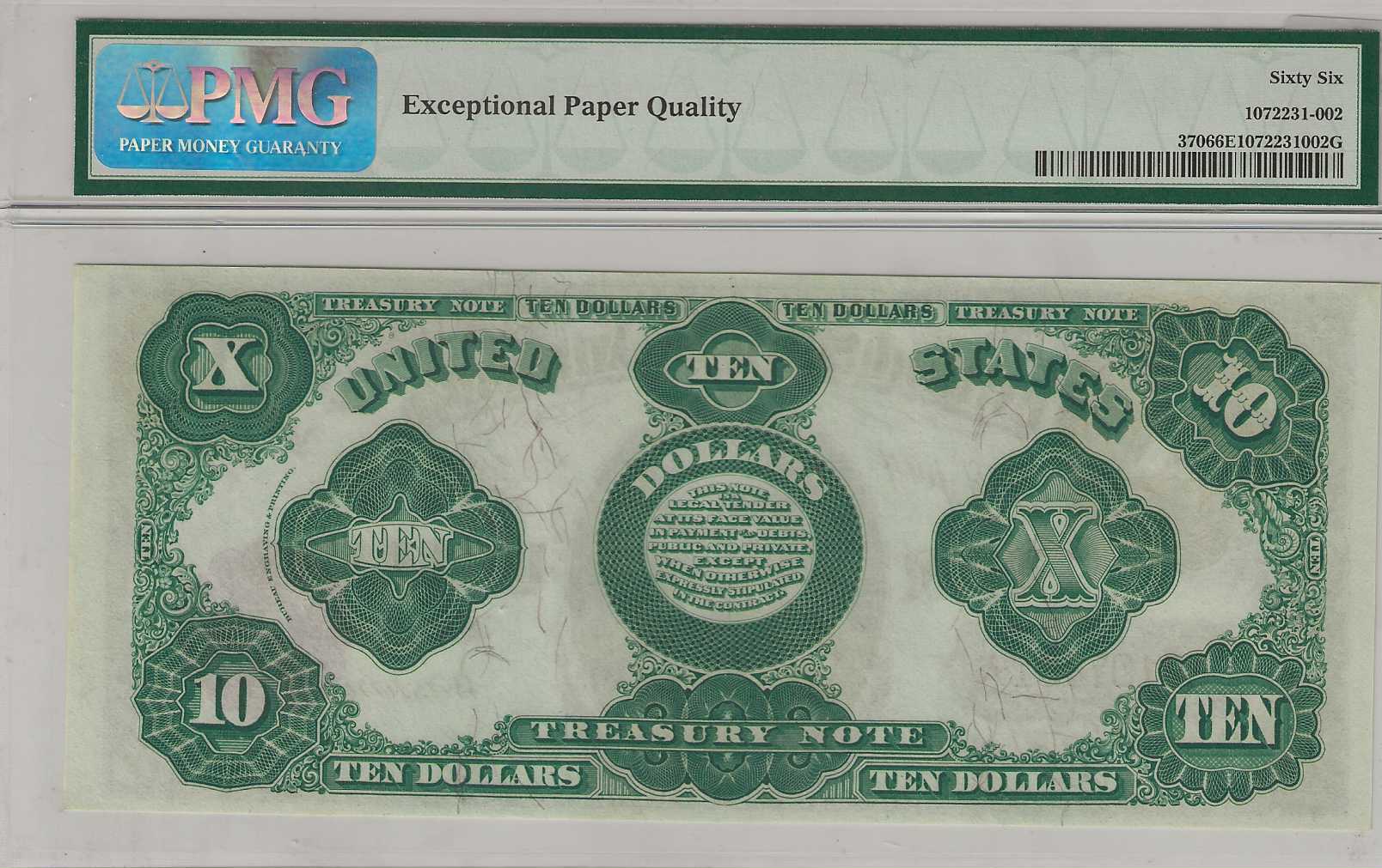 FR. 370 – 1891 $10 Treasury Note PMG 66EPQ GCU