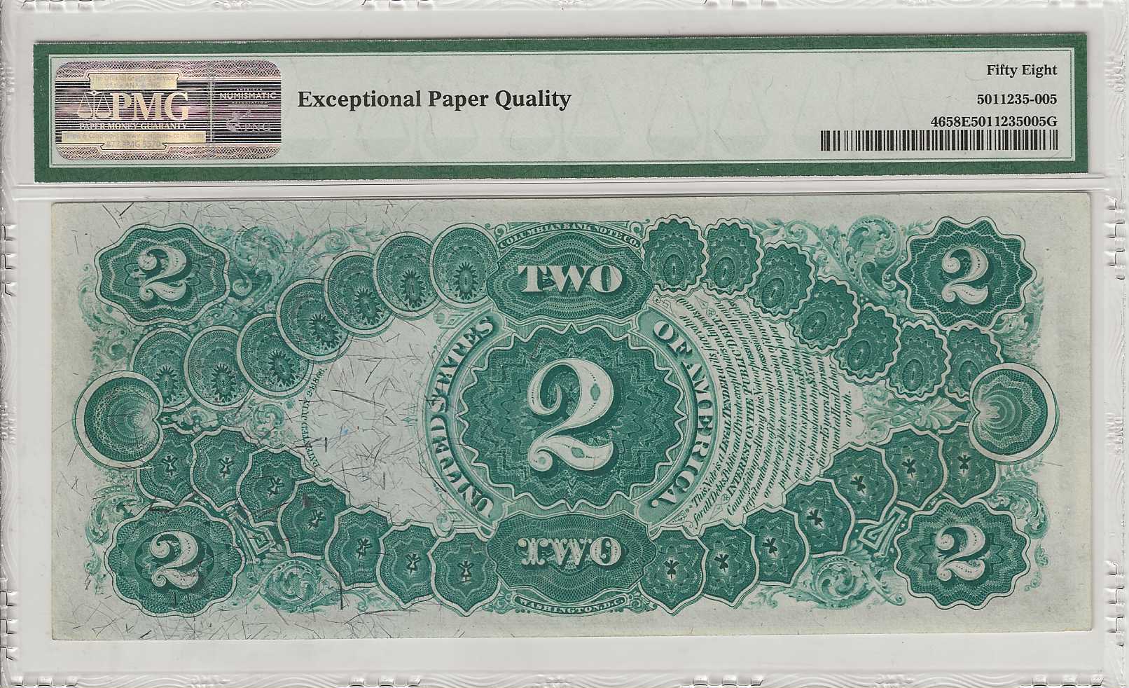 FR. 46 – 1875 $2 Legal Tender PMG58 EPQ – CAU