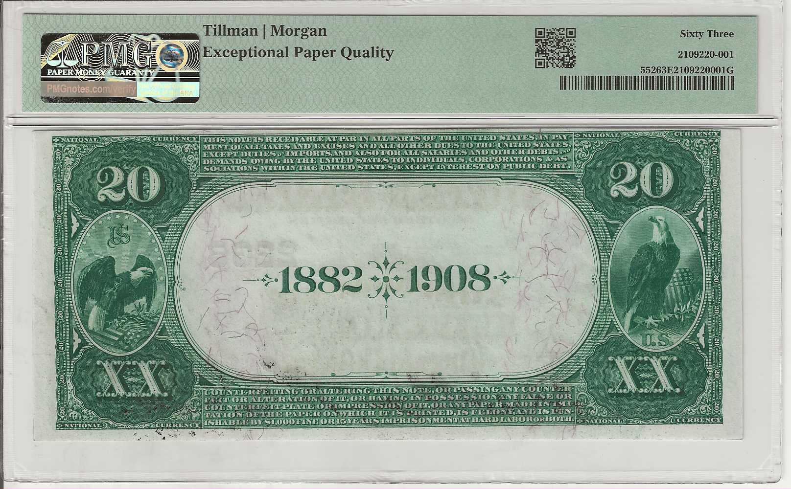 FR 552 $20 1882 Date Back – Pittsburgh, PA The Diamond NB Ch. #2236 PMG 63EPQ
