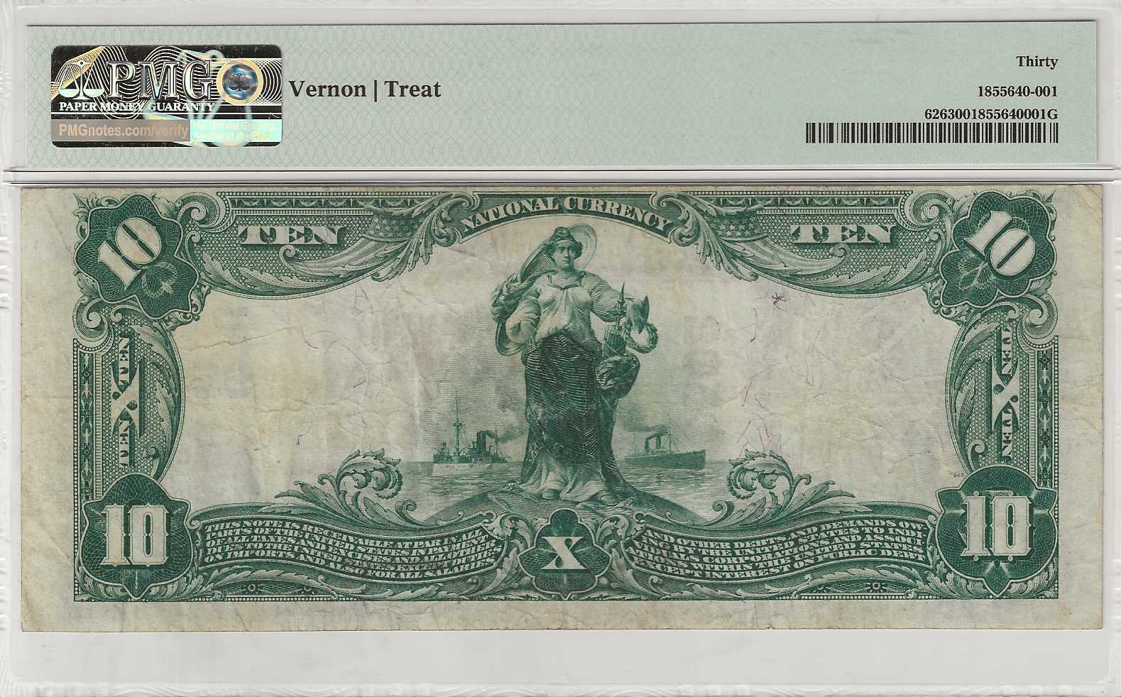 his Series 1902 Plain Back $10 National Bank Note was issued by a California bank under Charter #9502 in Oakland. It features Alexander Hamilton on the face and the classic green “Plain Back” reverse design introduced after 1915. National Bank Note – Third Charter Period. PMG 30 Choice Very Fine (XF) – solid paper quality with moderate circulation wear, strong color, and pleasing eye appeal. This note represents an important piece of California banking history and is a desirable addition for collectors of Western Nationals or early 20th-century U.S. currency.