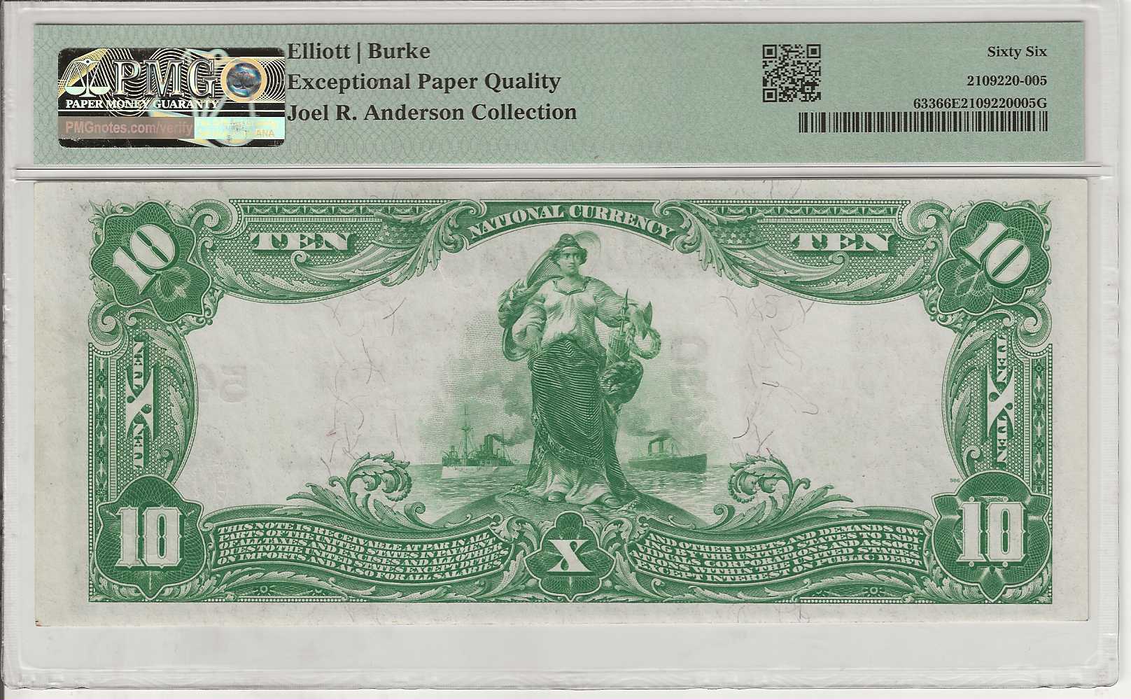 This Gem Uncirculated FR 633 presents as an exemplary specimen, distinguished by its vibrant bright blue seal and exceptional overall preservation. The Third Issue design features a dignified bust of President William McKinley on the face, complemented by the finely engraved and symbolic Liberty and Progress vignette on the reverse. Awarded PMG’s Exceptional Paper Quality designation, this note reflects superior originality, clarity, and surface integrity. A specimen of this caliber represents an elevated opportunity for the advanced collector—a distinguished addition to any well‑curated collection.