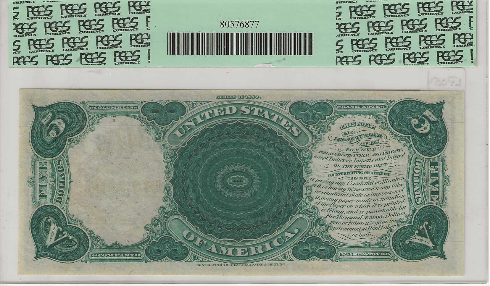 FR. 70 – 1880 $5 Legal Tender PCGS 65PPQ GCU