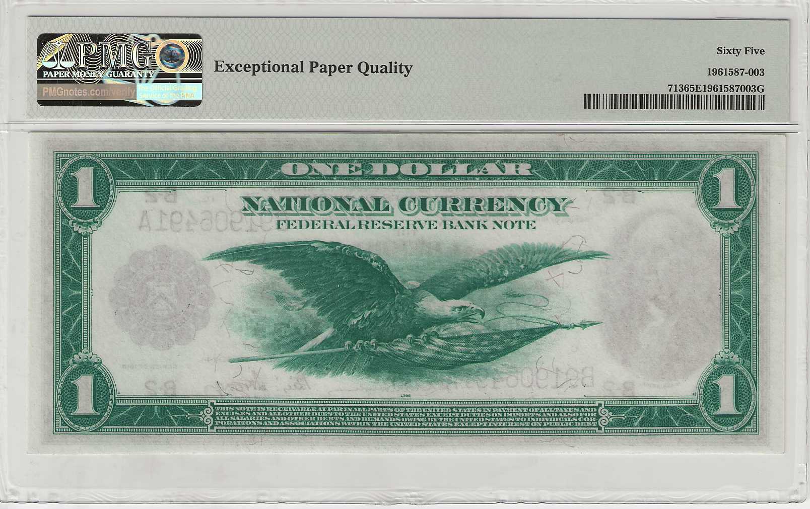 FR. 713 – 1918 Federal Reserve Bank Note, New York $1 PMG65 EPQ GCU