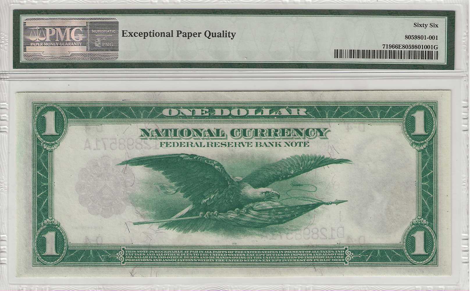 FR. 719 – 1918 $1 Federal Reserve Bank Note, Cleveland PMG 66EPQ GCU