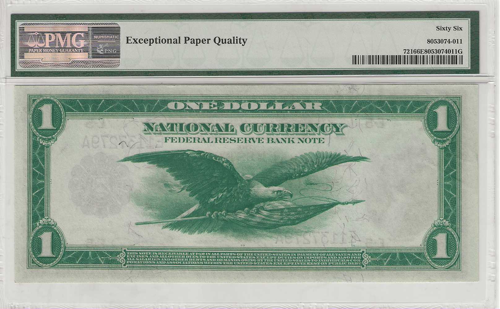 FR. 721 – 1918 $1 Federal Reserve Bank Note PMG 66EPQ GCU