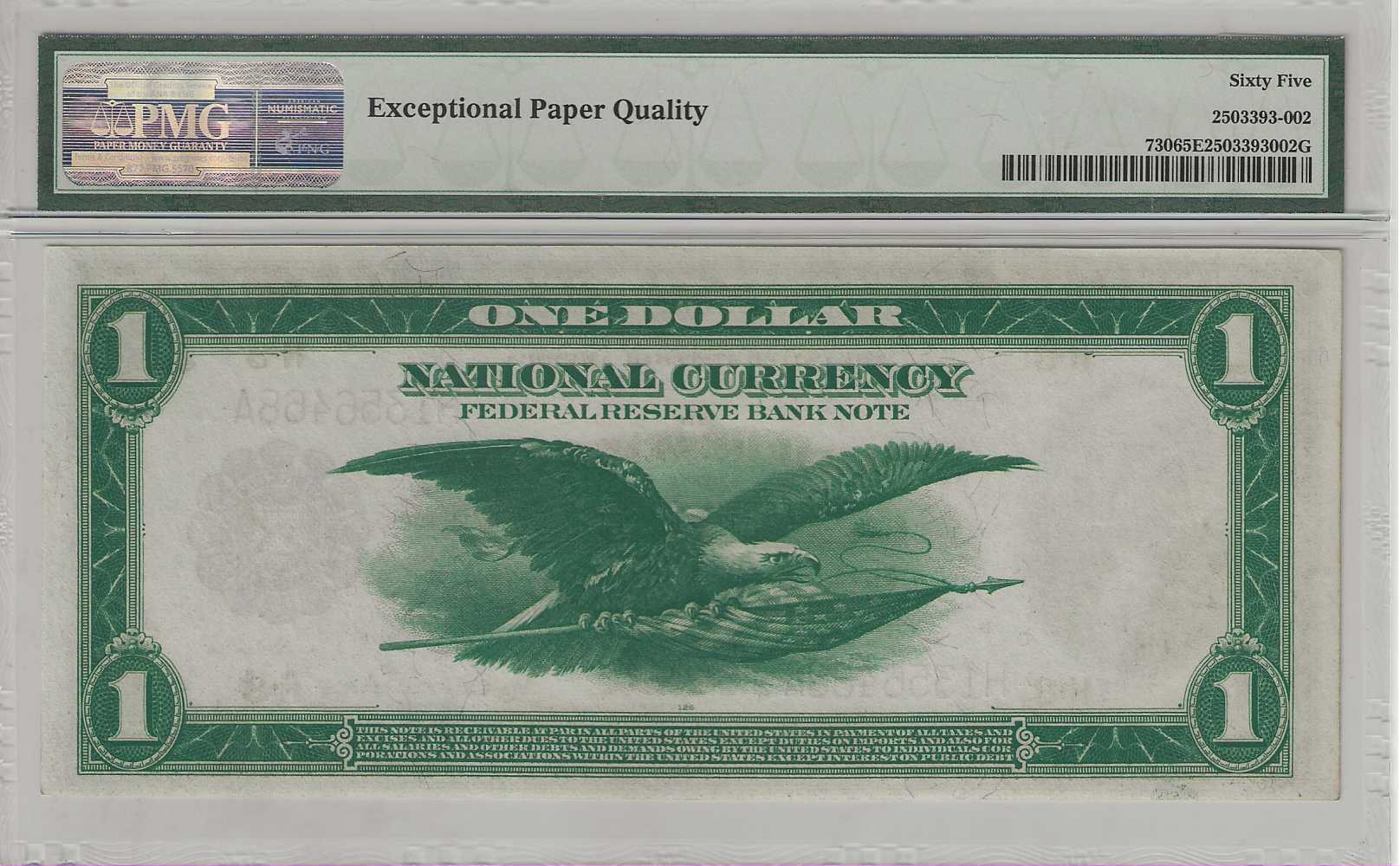 FR. 730 – 1918 $1 Federal Reserve Bank Note, St. Louis PMG 65 EPQ -GCU