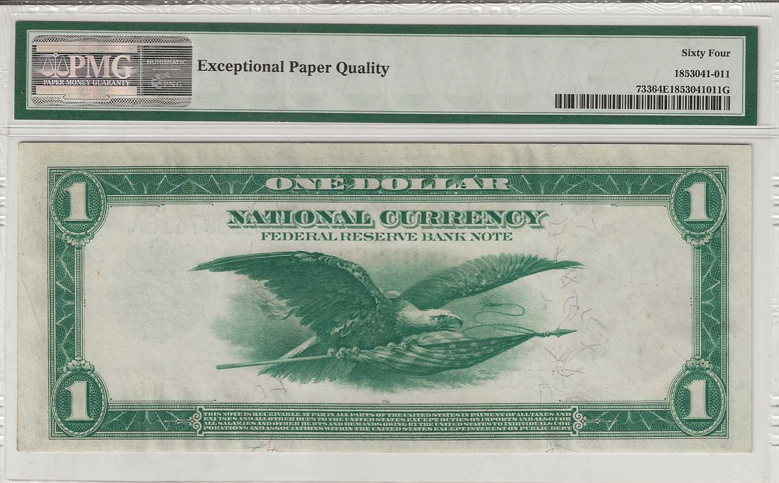 FR. 733 – 1918 $1 Federal Reserve Bank Note PMG 64EPQ CU