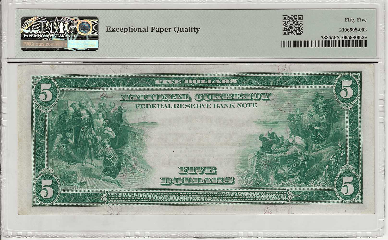 This 1915 Atlanta Federal Reserve Bank Note ranks among the most elusive issues in what is already a challenging and highly sought-after series. With only 18 examples recorded across all grades, its rarity is well established. PMG has certified just one note finer than this impressive piece. Awarded PMG’s coveted Exceptional Paper Quality designation, it boasts broad margins, original surfaces, and only light evidence of handling—making it an outstanding representative of this scarce and historic issue.