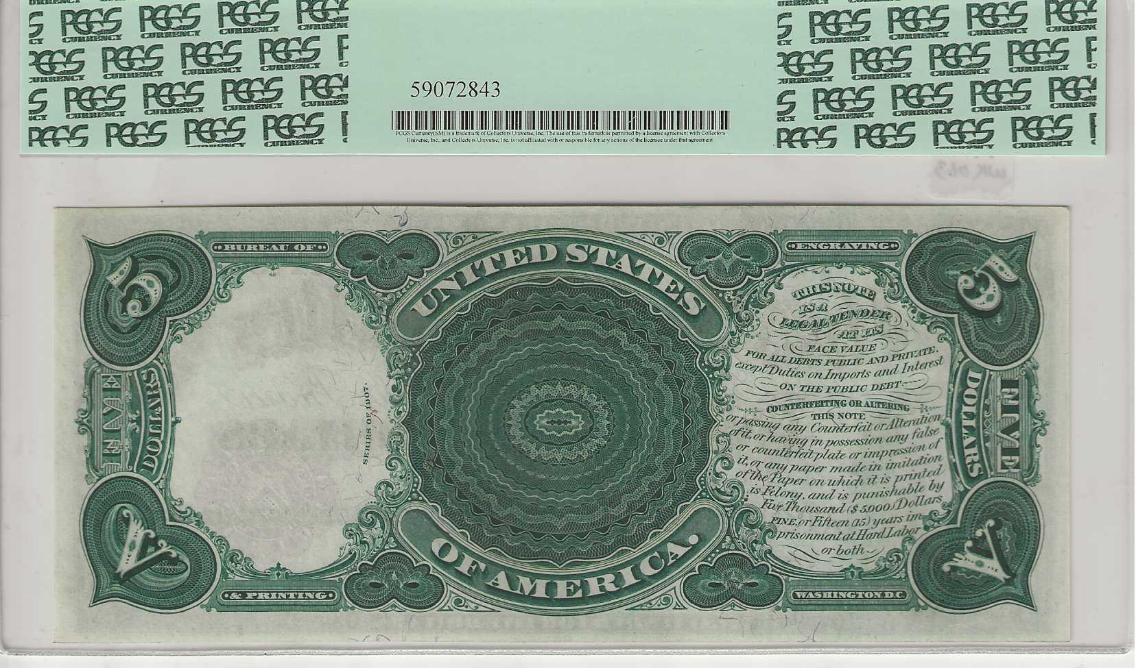 FR. 83 – 1907 $5 Legal Tender PCGS 65PPQ -GCU